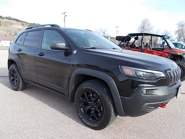 Local one owner 2021 Jeep Cherokee Trailhawk 4x4 with the 3.2L V6 and 9-speed automatic transmission active drive II. Nice low miles and has premium heated leather seats, heated steering wheel, remote engine start, back up camera, touch screen display, 8-way power driver seat, apple car play, uconnect 4, SiriusXM, rain sensing wipers, advanced brake assist, forward collision warning, blind spot cross path detection, back up park assist with ER brake, black out package, tinted windows, and tow package.